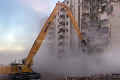 An ultra-high reach demolition boom-arm is a purpose-built attachment to elevate demolition tool in tearing down multi-story buildings.The beauty of the high reach demolition front is its ease of positioning and flexibility in manoeuvering of tool in carrying out primary and secondary demolition jobs safely.
